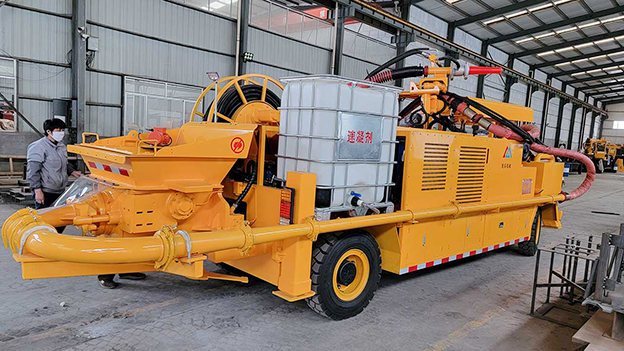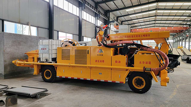 2.車載式濕噴臺車泵送系統(tǒng)能耗少,工作效率高,故障率低,易損件少,維護使用成本低,系統(tǒng)可靠性高,輸送量穩(wěn)定。噴射系統(tǒng)采用雙噴頭噴漿作業(yè),提高了工作效率。